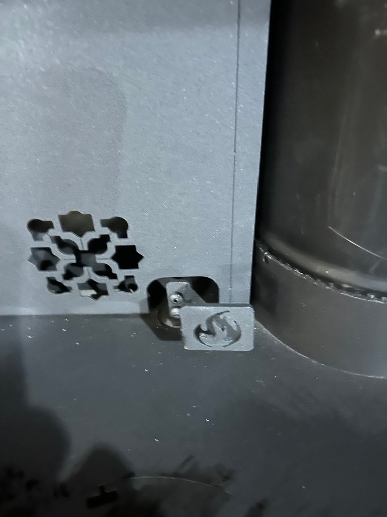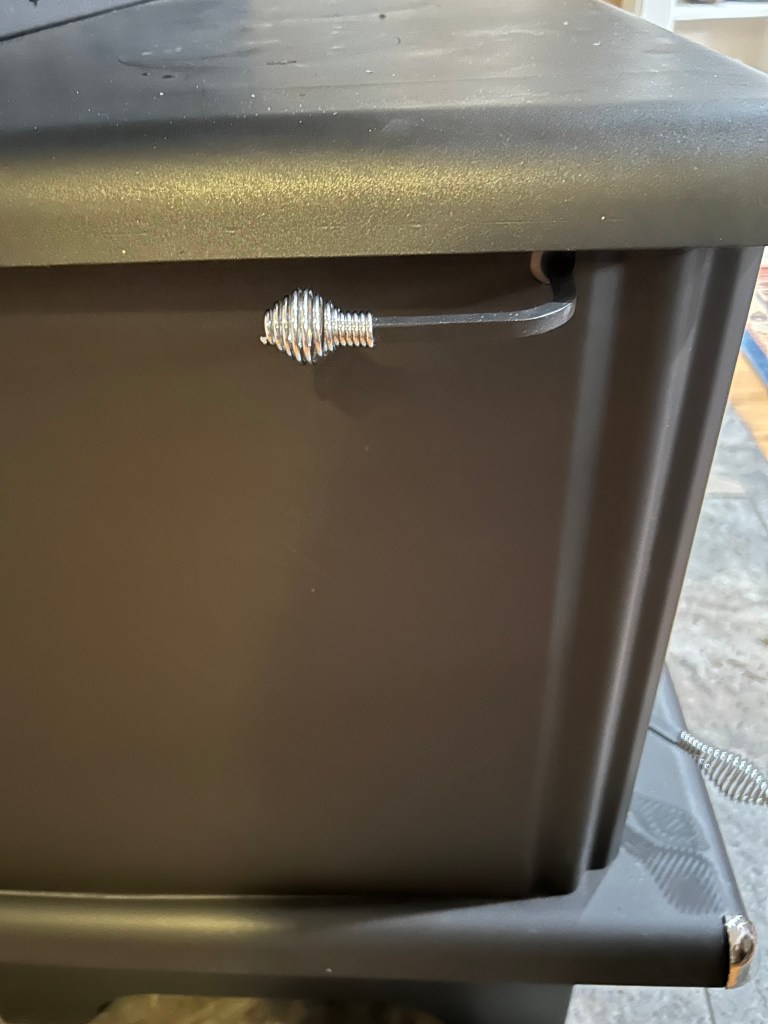 The first is called the air admission lever. It is located on the left side of the stove near the firebox. This lever will need to be in the horizontal position. On stoves with a damper—open it.