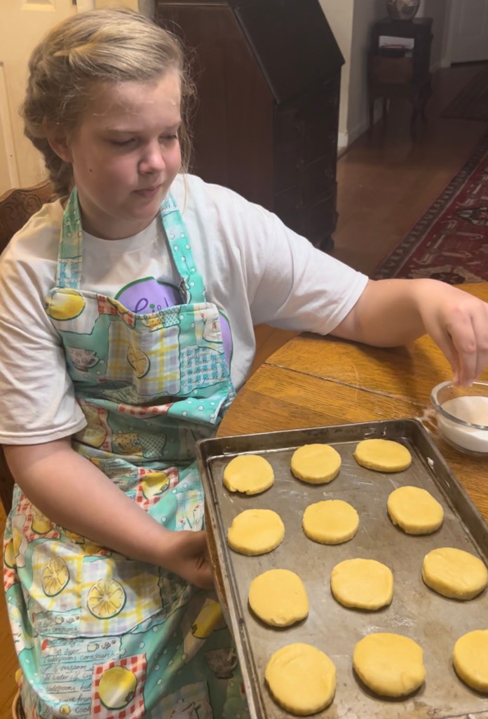 When I suggested that we bake tea cakes for Bella’s Blog, she danced a jig. It’s just something about an old fashioned southern tea cake that kids love! I have never seen a child that did not LOVE a tea cake!