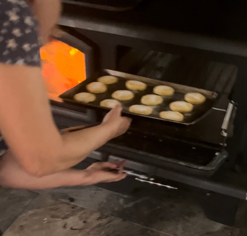 To Bake in a Wood Stove–(or bake for 10-12 minutes in conventional oven)