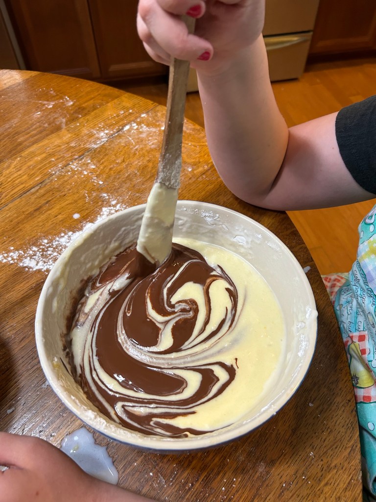9. POUR into greased and floured bundt pan and bake at 350°