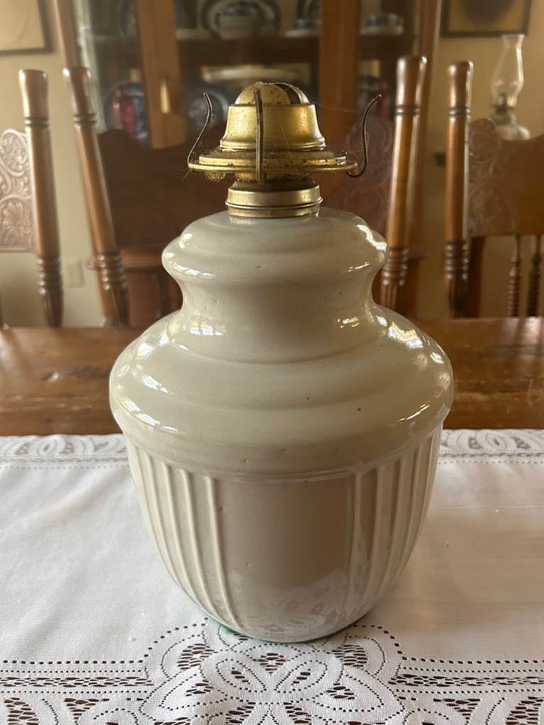 Nanny told me that she spied this old oil lamp in the back of his pickup truck and offered to trade him a gallon of gas for it. So the deal was struck. As a matter of fact, Nanny struck so many deals like this that Dado almost went broke, and packed her back to the family farm!